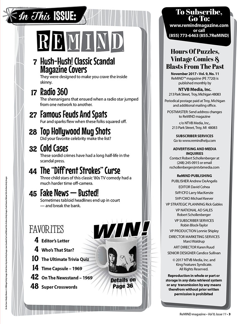 This month we remember famous frenemies and performing partners who weren't pals. We also recall some of the juiciest scandals in Hollywood history and the tabloids who loved to dish the dirt. Plus, catch up with Susan Sarandon, who earned an Emmy nomination for her portrayal of sloe-eyed beauty Bette Davis in the FX series Feud: Bette and Joan.